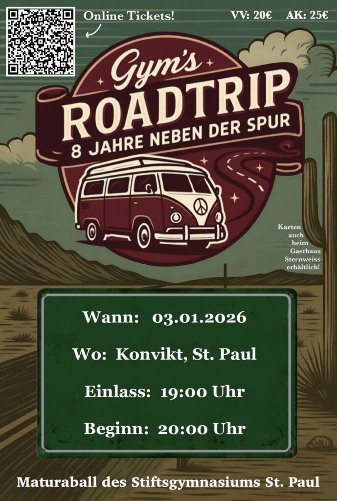 Der Maturajahrgang 2026 lädt auch alle jung gebliebenen Alt-St. PaulerInnen zu einer rauschenden Ballnacht ins Konvikt: 3. Jänner 2026, Einlass: 19 Uhr, Beginn: 20 Uhr!